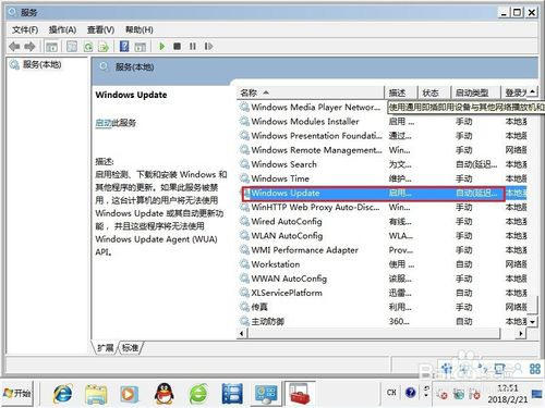 2、打开的窗口中列出的是系统中的服务,是按照字母序排列的,向下拉动找到【windows update】:
