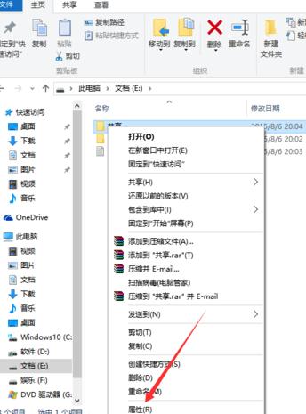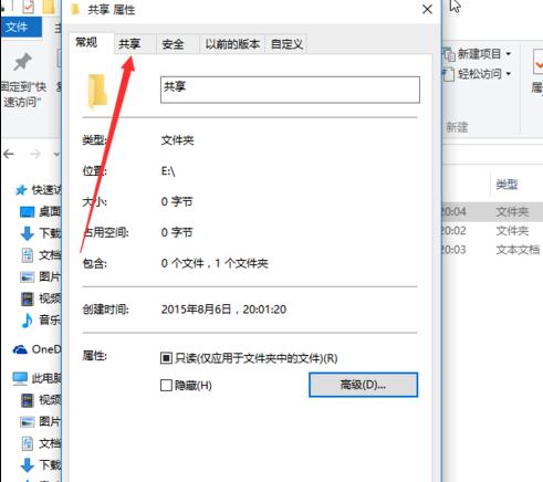 出现了共享属性,单击共享。