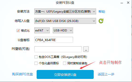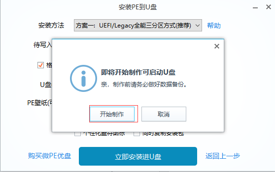 4、设置完毕后,点击“立即安装进U盘”,开始制作启动盘