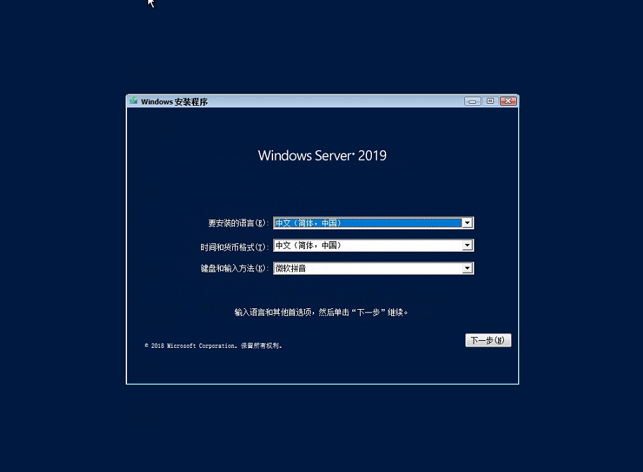 1. 将Windows Server 2019的安装光盘放入光驱,打开电脑,选择从光驱启动(如果是用U盘制作的Windows Server 2019启动盘,选择从相应的U盘启动),然后就可以看到Windows Server 2019的启动界面。