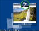 将鼠标移动到任务栏中的程序图标上, 就会自动出现这个程序已打开窗口的缩略图; 如果将鼠标悬停在缩略图上, 则窗口将展开为全屏预览; 您甚至可以直接从缩略图关闭窗口。