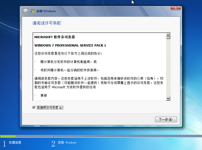 3. 勾选“我接受许可条款”, 点击“下一步