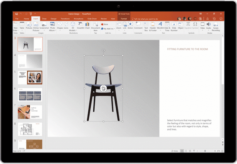 【3D 模型】功能,即可将 3D 模型*导入 PPT 中直接使用。
